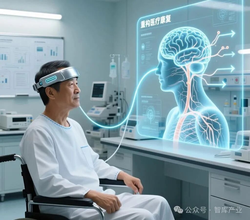 • 脑机接口+医疗:人类与人工智能的学习融合,是脑机接口(BCI)发展的下一阶段,实现复杂拟真功能。BCI技术与康复机器人结合,帮助瘫痪患者实现“意念控制”肢体训练,康复周期缩短40%,生活自理能力恢复率提升35%。